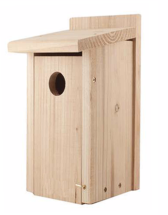 Our friend Woody from Munson, MA makes the best nesting boxes ever. This one is for chickadees only! The hole size is 1 and 1/8 inches. It’s smaller than a bluebird size box. This is 12 inches high (including the back with a predrilled screw hole and comes with a screw), 5 inches wide, 5 inches deep. To clean, just turn the front gold latch and the front panel opens. Easy. Made from long lasting cedar. Make sure you clean out any crud from winter or last year in the spring.